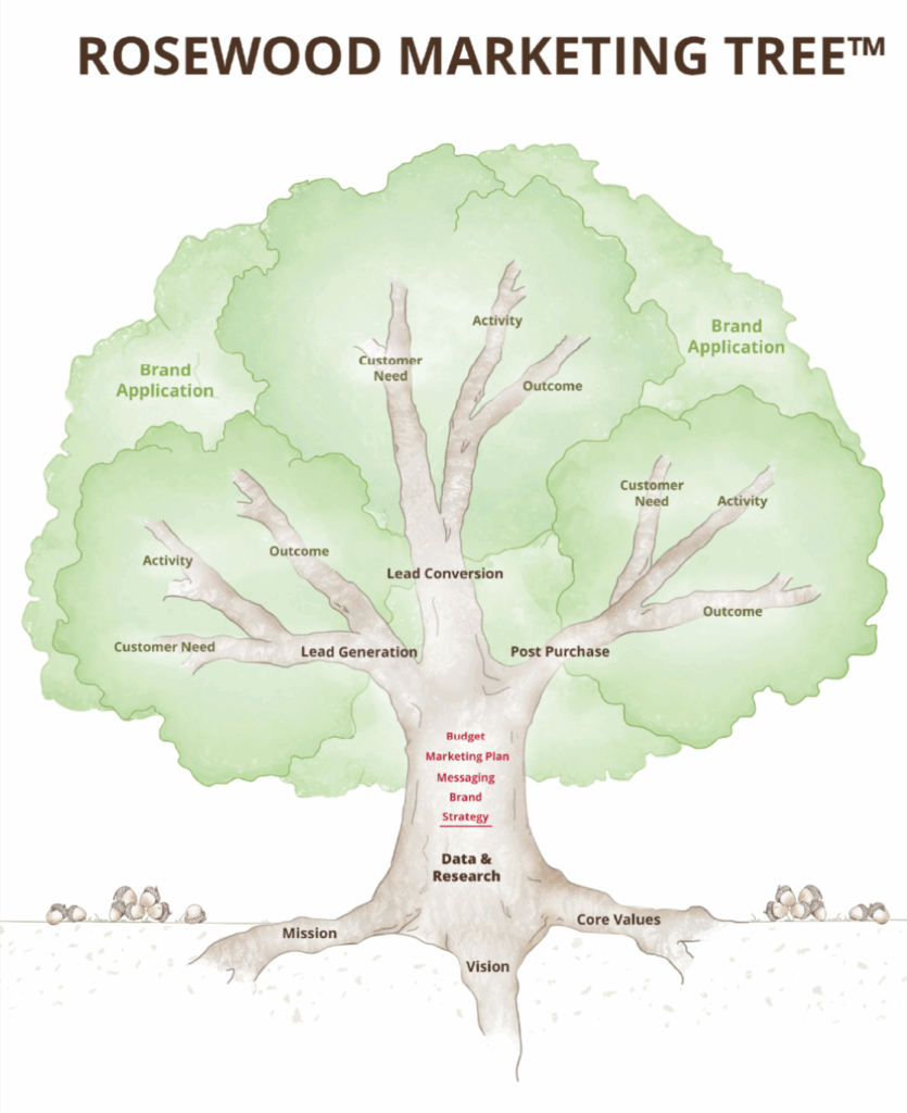 At Rosewood Marketing, our core values are creativity in problem solving, hunger for personal growth, pursuit of humble excellence, purposeful communication, and passion for client success. For Rosewood to accomplish its purpose and mission, we need to live by these core values. Our clients should be able to count on us to follow these core values as we serve them.
