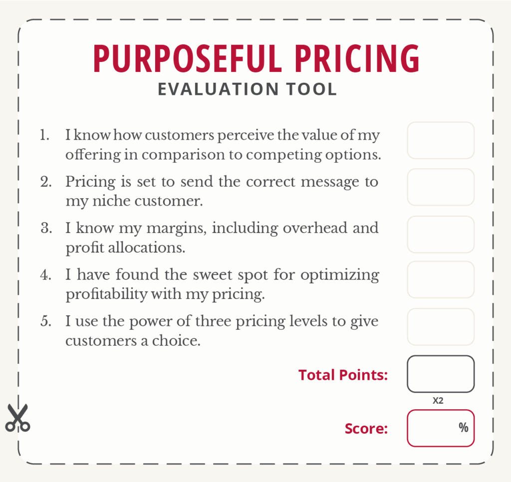 Here is an evaluation tool to help you assess your prices.